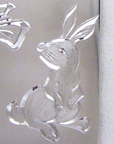 [PR] ×[PR]上記の広告は3ヶ月以上新規記事投稿のないブログに表示されています。新しい記事を書く事で広告が消えます。 うさぎちゃん。 すっかりUPするのを忘れてた絵彫り。 『うさぎちゃん』でっす。 シルバーの名札の裏に彫ったモノなんすけどね。 注文が、 「卯年だから『絵でうさぎ』と、鷹って文字が好きだから『鷹』も彫ってくれ。」 という内容でして、 いやぁ~~ 何が難しいって、どう構図を考えても 「鷹に襲われる兎」 になっちゃうんすよねぇ~ で、 オイラが無いセンスで精一杯考えたのが、 鷹っ!!! うさぎ:「は?何か?」 みたいな、 鷹の文字は凛々しく、 うさぎはちとオトボケでふてぶてしいく、 「普通に鷹を眺める兎」で イッテみたっす! 以上、 久々の絵彫り注文でしたっす。 [0回]PR コメント コメントを書く コメントを書く コメント送信