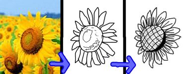 一番右のように花びらの形とか、種の部分とか、ちょいと影付けて向き付けたり