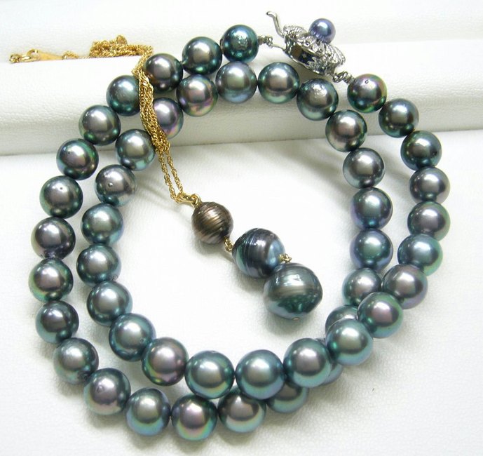 タヒチ真珠という通り名が一番有名じゃないでしょうか。南洋で産出される真珠っす。形と大きさは上の白蝶(南洋珠)とほぼ同じで、色が、