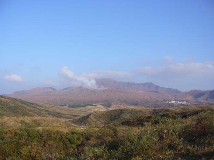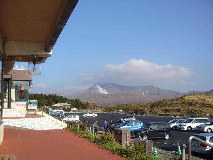 その途中立ち寄った休憩所から撮った阿蘇山。