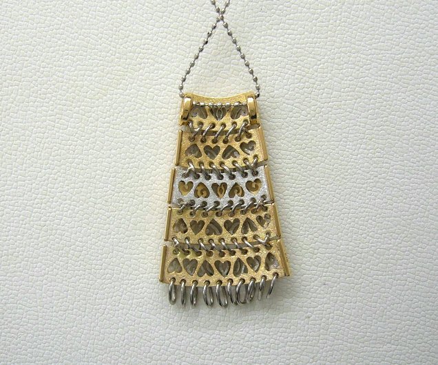 プラチナとゴールドの2色で表裏に透かしを入れ可動するという