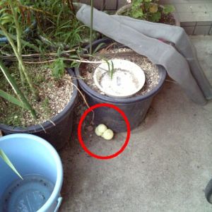 親父や母上が使ってる鉢の横に何か転がってる。