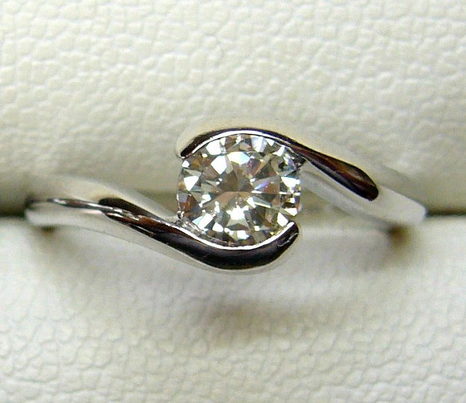 リング腕部分が絞りつつダイヤを巻き込む伏せ込み留めする