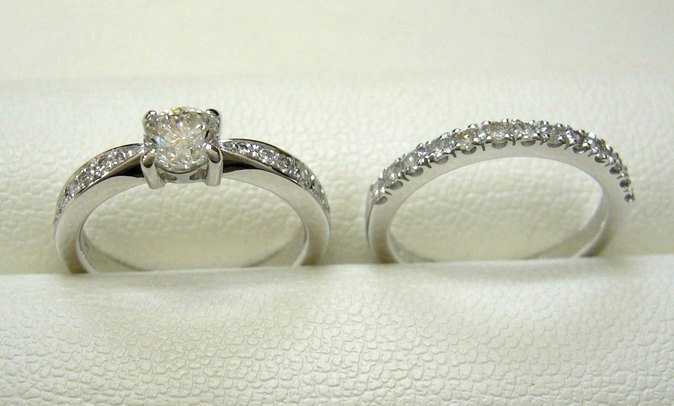 右の元は、甲丸にダイヤが埋め込まれたマリッジリング。