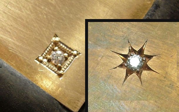今度は石(ダイヤ)を5ピース彫り留めしたっす。