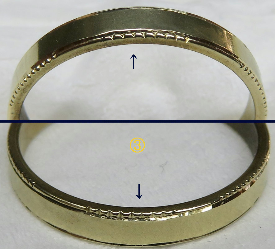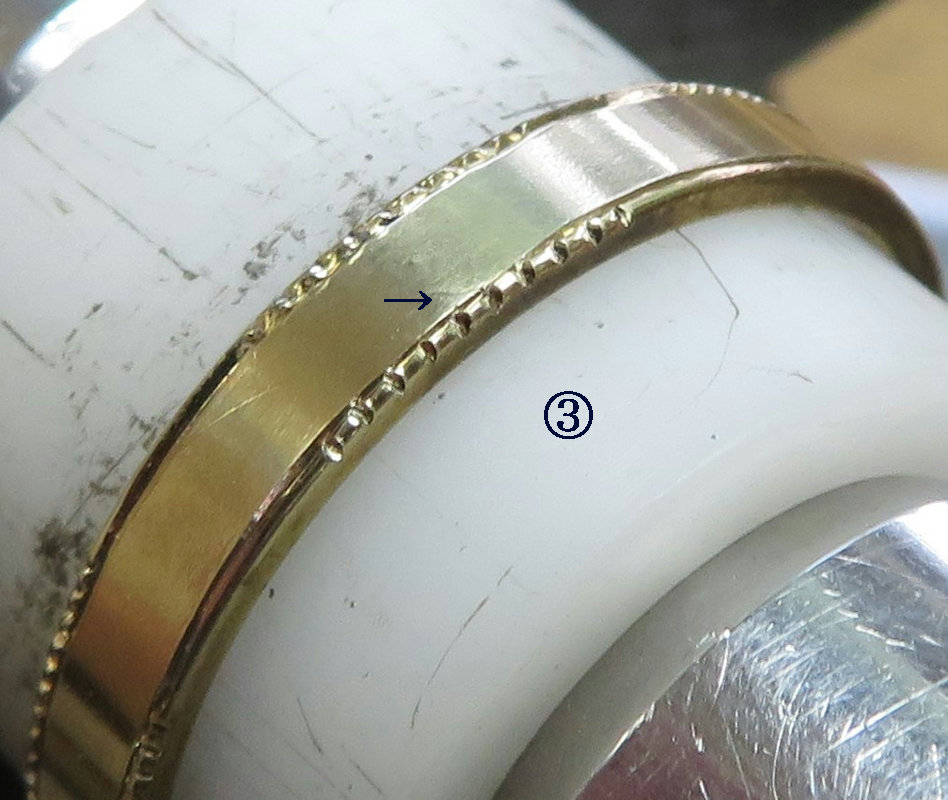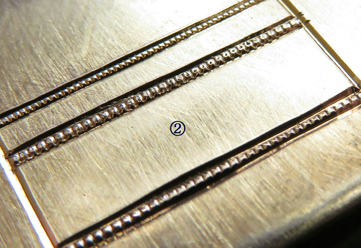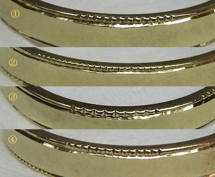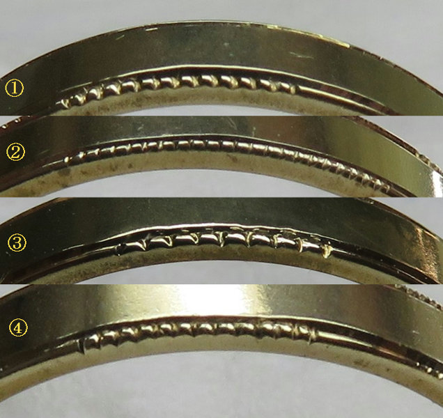 リングの縁に入るミルグレインのサイズで、前回、大中小と言った内の中小サイズです。