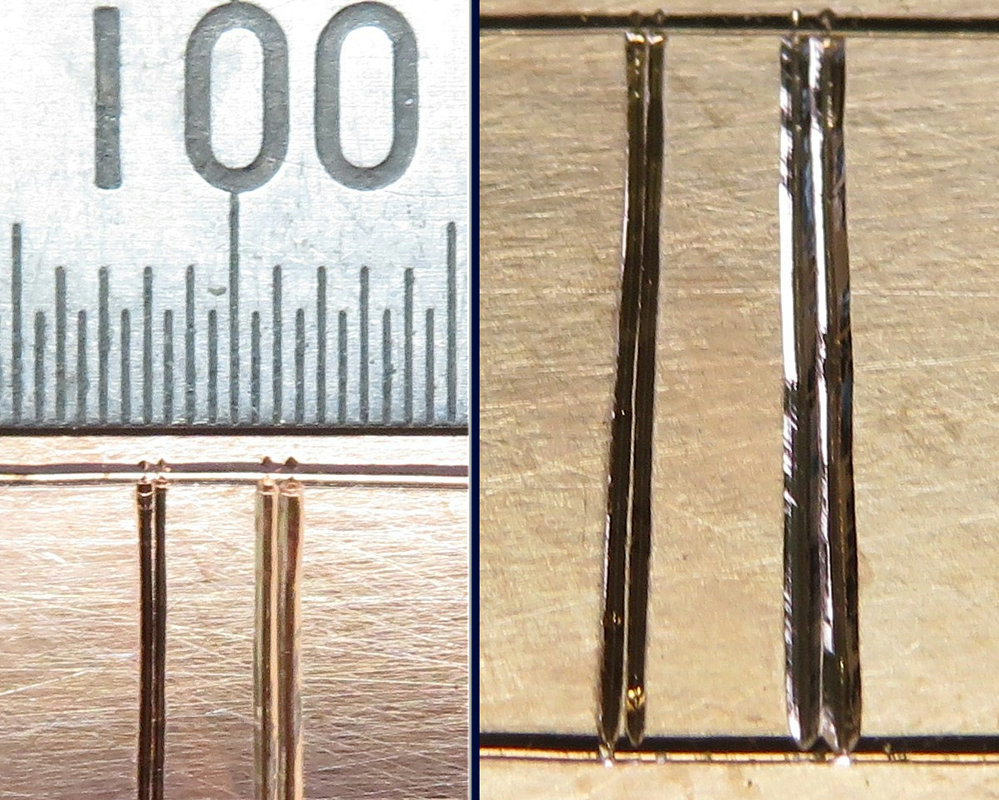 ミルグレイン・ミル打ち前の状態。ゲージは0.05mm刻みです。上から下までの距離は15mmです。
