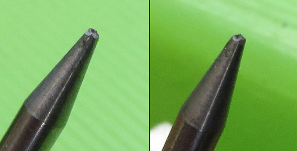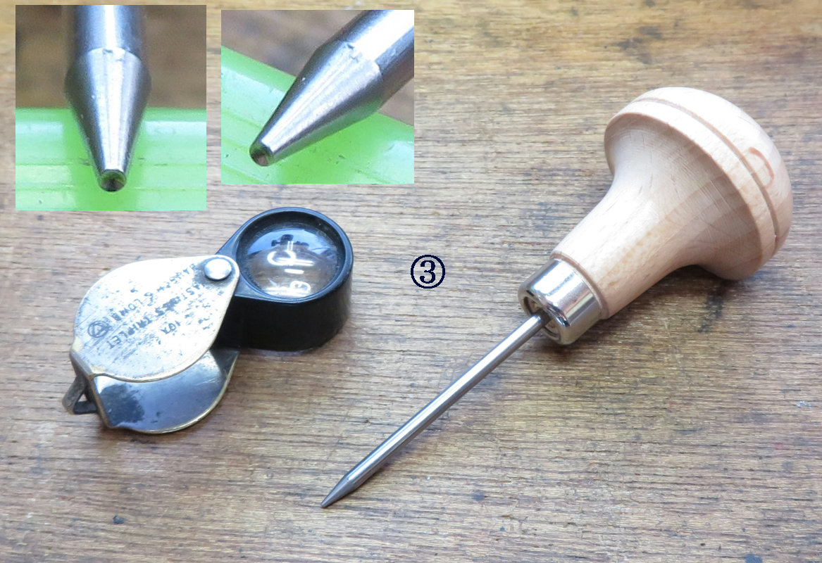 ①のように先端をポンチで打って整形していないので粒々のメスに当たる所が甘い。
