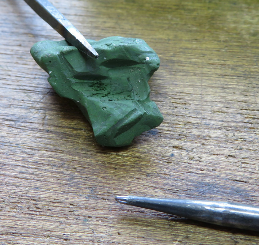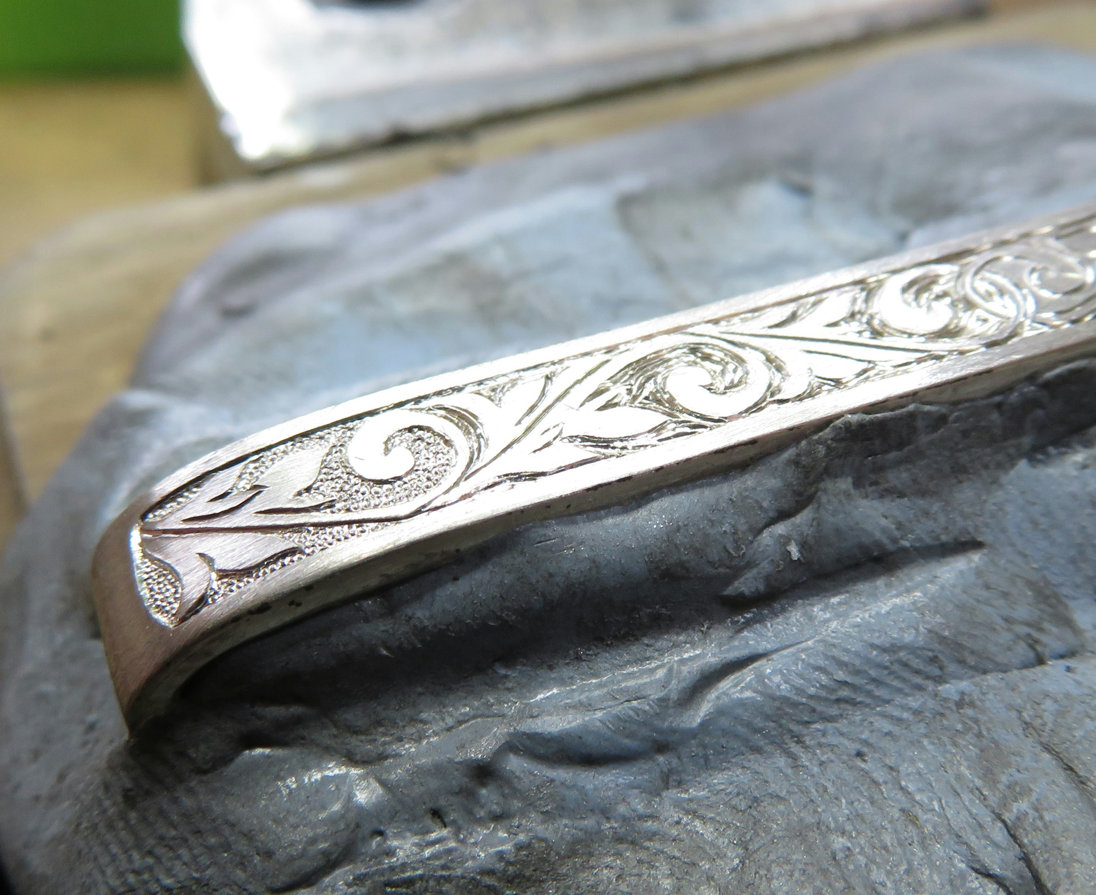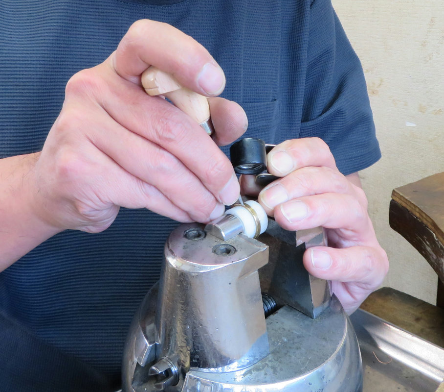 そしたらタガネを品物に垂直気味に立てて更にクイクイっと。