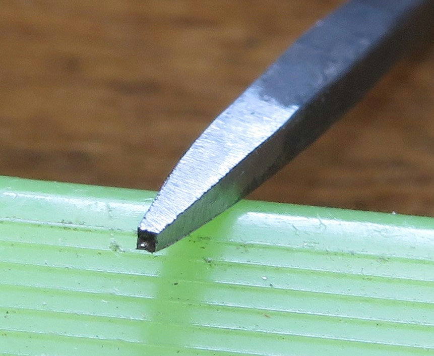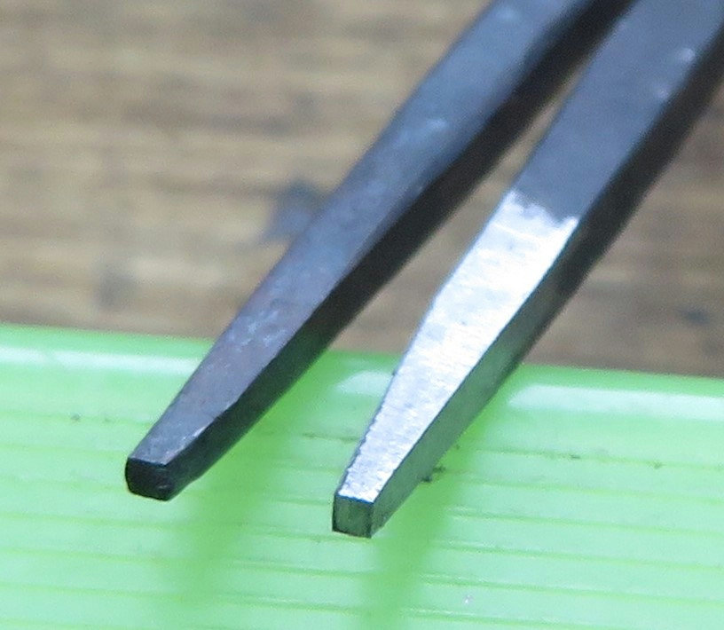 ・先端が四角、やや長方形になるよう砥石で刃を付ける